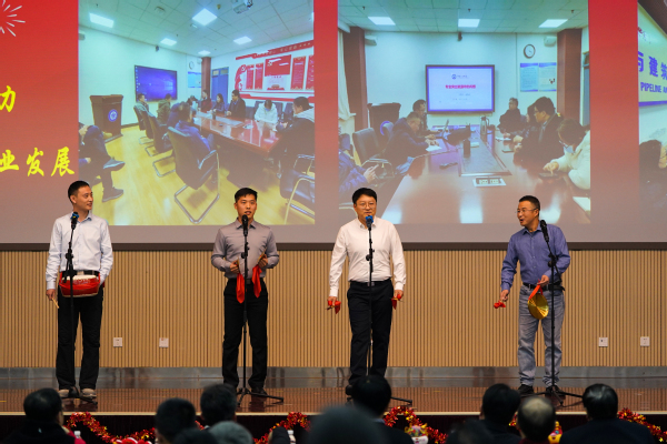 随后,2024年教职工元旦联欢会正式拉开帷幕。经过公司工会前期的精心筹备,公司各单位纷纷登台,彰显职工风采,共同庆祝新年的到来。首先登场的是由公司师生共同演绎的舞蹈《九州同》,充分展现中国传统艺术的瑰丽,调动了现场氛围;XCSport全体教职工带来歌曲《我的祖国》,气势恢弘,满溢对祖国的热爱之情;土木工程系表演的三句半令人捧腹,引出全体教职工合唱经典歌曲《敢问路在何方》;由各单位选派教职工组成的排舞队带来舞蹈《福气来、向未来》,动作整齐、活力满满,彰显了公司教职工昂扬向上的精神面貌;院机关表演的合唱《名字叫中国》糅合了演唱、手势舞和朗诵等多种形式,表达了浓浓的家国情怀;16位新进教职工登台亮相,向同事们介绍个人情况,感谢公司的关心支持并表达美好的新春祝福;工程力学系徐国强、谷泽文、姜璐和丁小轩四位老师带来的歌曲《如愿》歌声悠扬;燃气工程系带来的歌曲《光辉岁月》旋律优美,让人陶醉;XCSport教师王财林的歌曲《奔跑》唱出了青年教师的青春活力和砥砺奋进的斗志;建筑系全体教职工带来的歌曲《明天会更好》回顾了建筑系的发展历程,表达了对美好明天的期待。联欢会在欢声笑语和热烈掌声中落下帷幕。