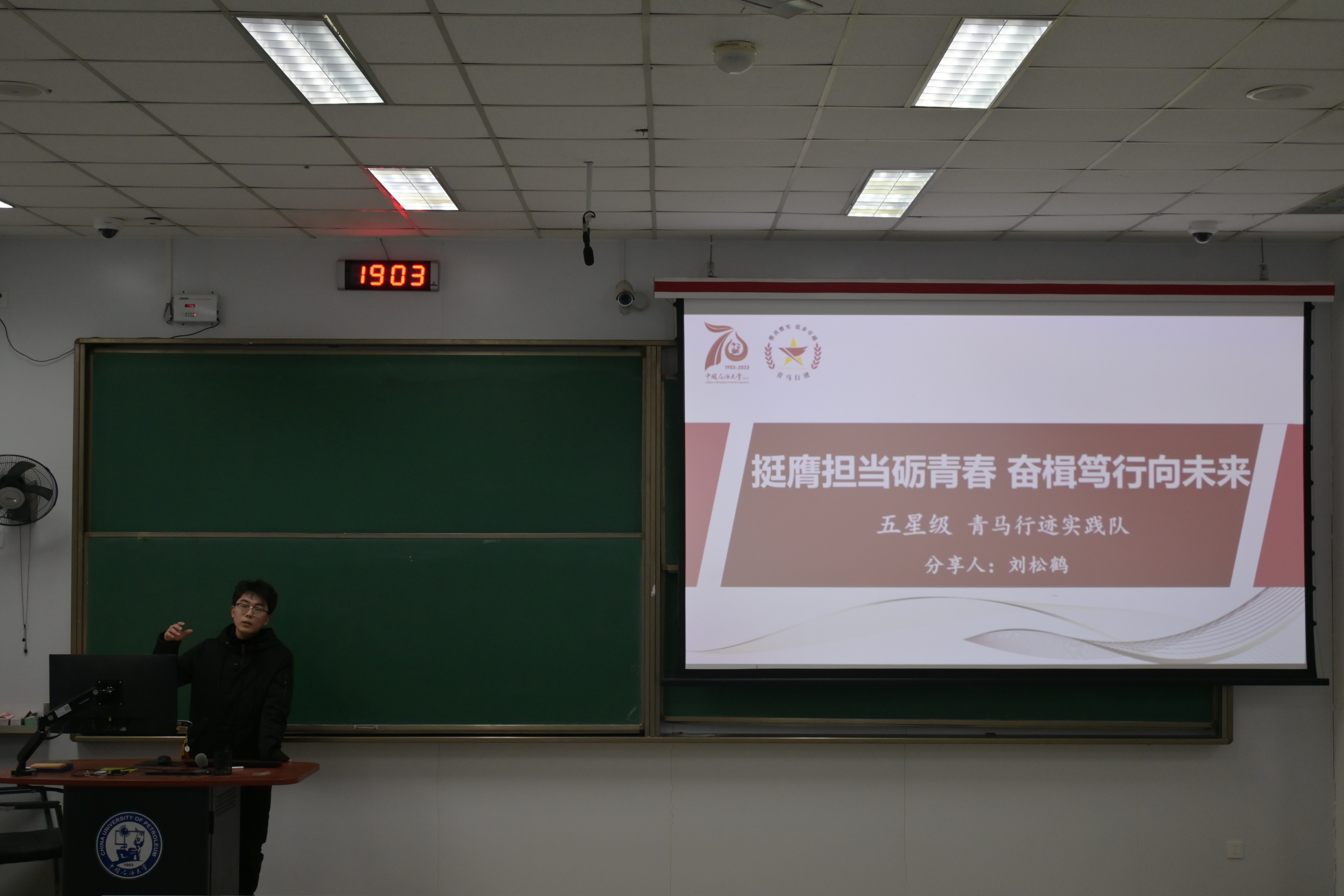 优秀实践队的经验可以为实践队伍指明方向、开拓思路。刘松鹤从实践选题、前期准备、策划实施、后期总结四个方面分享实践经历,切实详细地指出社会实践每一阶段应该如何做,应该注意什么,为与会实践队分享了高效且易实行的实践规划方案,使与会实践队对社会实践的流程与思路有了更为全面的认识。