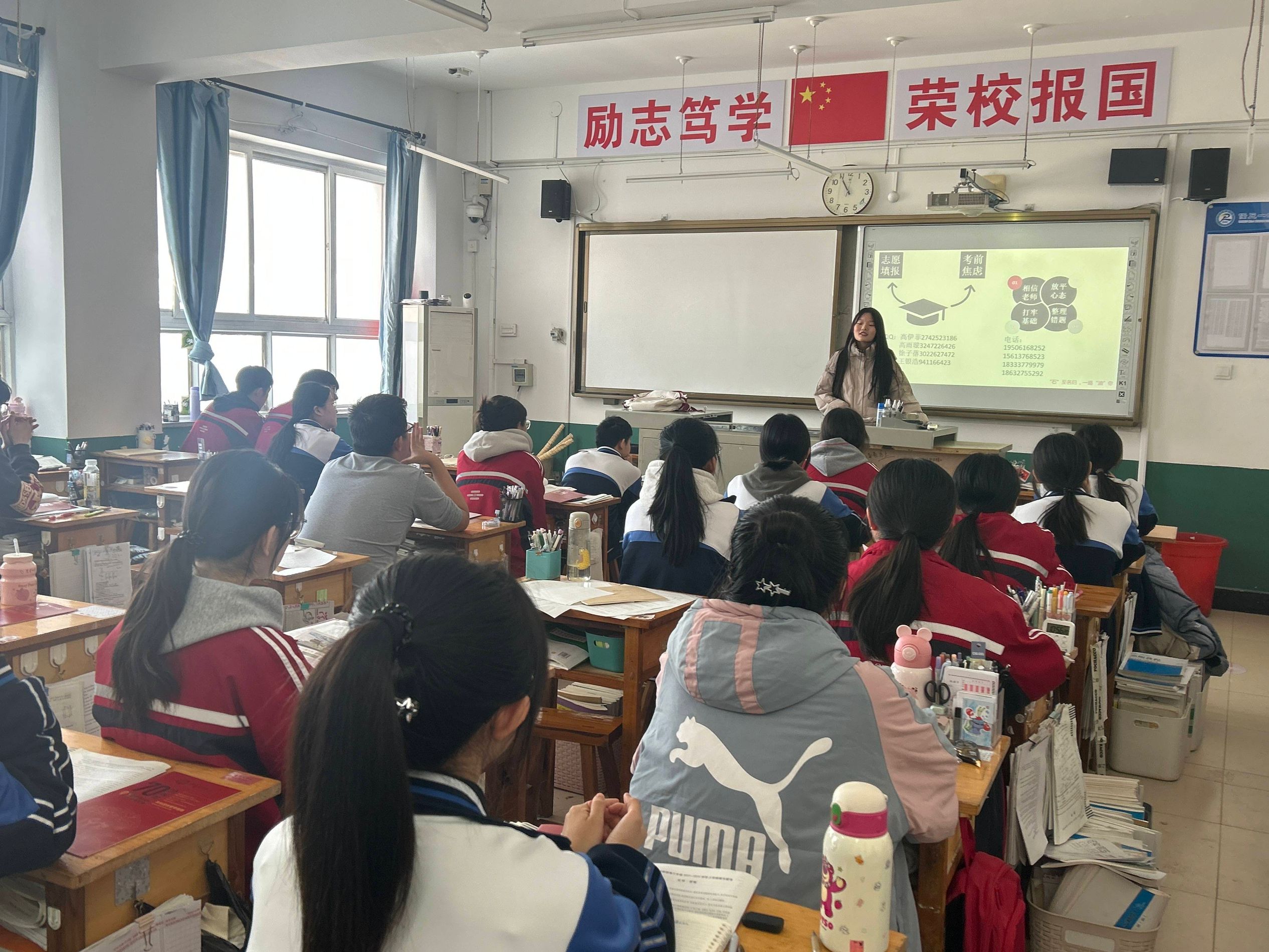 活动伊始,队员们相继汇报了自己在石大的学习与发展情况,并为同学们发放了石大招生宣传手册。队长高雨璇结合多媒体和石大招生宣传视频呈现了公司的发展历程、团队力量、学科优势、未来发展、校园生活等多方面的内容。队员髙伊菲通过分享自己的在校经历,如社团活动、校园文化活动、工作经历等来展示公司提供的优越资源。随后,队员王银浩、徐子蓓分别结合自己的经历,给同学们分享了高三复习方法,输送“过来人”的经验,讲解如何缓解压力和调整考试心态等备考阶段可能面临的问题。在互动阶段,高三年级的同学们踊跃提出问题,队员们针对提出的问题进行答疑。最后,队员们留下了联系方式以便能够及时对同学们提供帮助,并为同学们送出美好的祝愿。宣讲过程中,气氛活跃,同学们认真聆听,踊跃提出疑问。