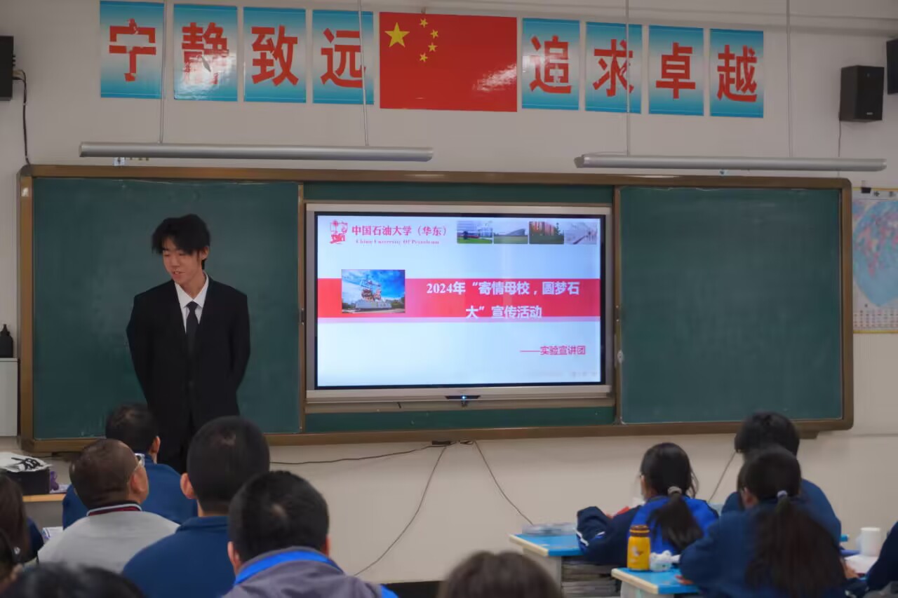 活动伊始,由队长祁永康向高三(5)班和高三(1)班同学们介绍了公司的历史、办学理念以及校园文化等,同时,播放石大校园的图片和视频,向同学们展示石大优美的校园环境、丰富多彩的校园活动以及优秀的团队力量。同时,祁永康结合亲身经历,分享了学习、生活和成长方面的点点滴滴,让高三同学们更加直观地感受到了石大的魅力和吸引力。随后,队员们还向同学们介绍了石大的特色专业和就业前景,并且结合自己的专业背景和实践经验,向高三同学们阐述了专业知识的重要性以及未来职业发展的趋势和方向。最后是员工提问环节,宣讲团成员与高三同学们进行了深刻的互动交流,分享了自己在高中阶段的学习方法和经验,讲述了在大学学习的心得体会。