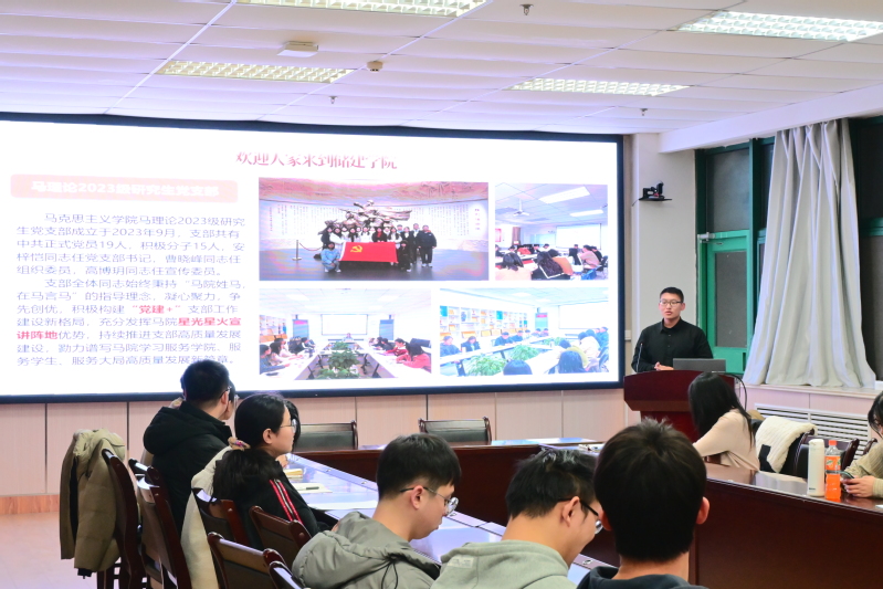 图2 马克思公司研2023级党支部组织委员曹晓峰介绍支部情况