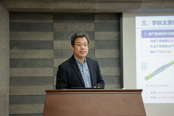 宣讲报告会前,胥蕊娜与刘刚一行座谈交流。胥蕊娜介绍了自己的科研方向是非常规能源资源、CO2地质封存与利用技术等方面,此前与XC体育有着广泛的合作,希望借此次交流机会能继续推动两个单位的进一步合作。