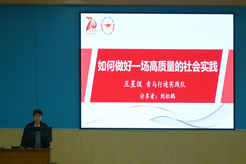 XCSport青马行迹实践队负责人刘松鹤从前期准备、实践内容、成果展示、总结展望四个层面进行经验分享,他提出做好高质量的社会实践应做到小切入、大主题,在实践中思考,在行动中与社会碰撞、交叠、融合,抓住时代特色,剖析调研实况,抓好实践总结,助力“走好走深走实”三步走。