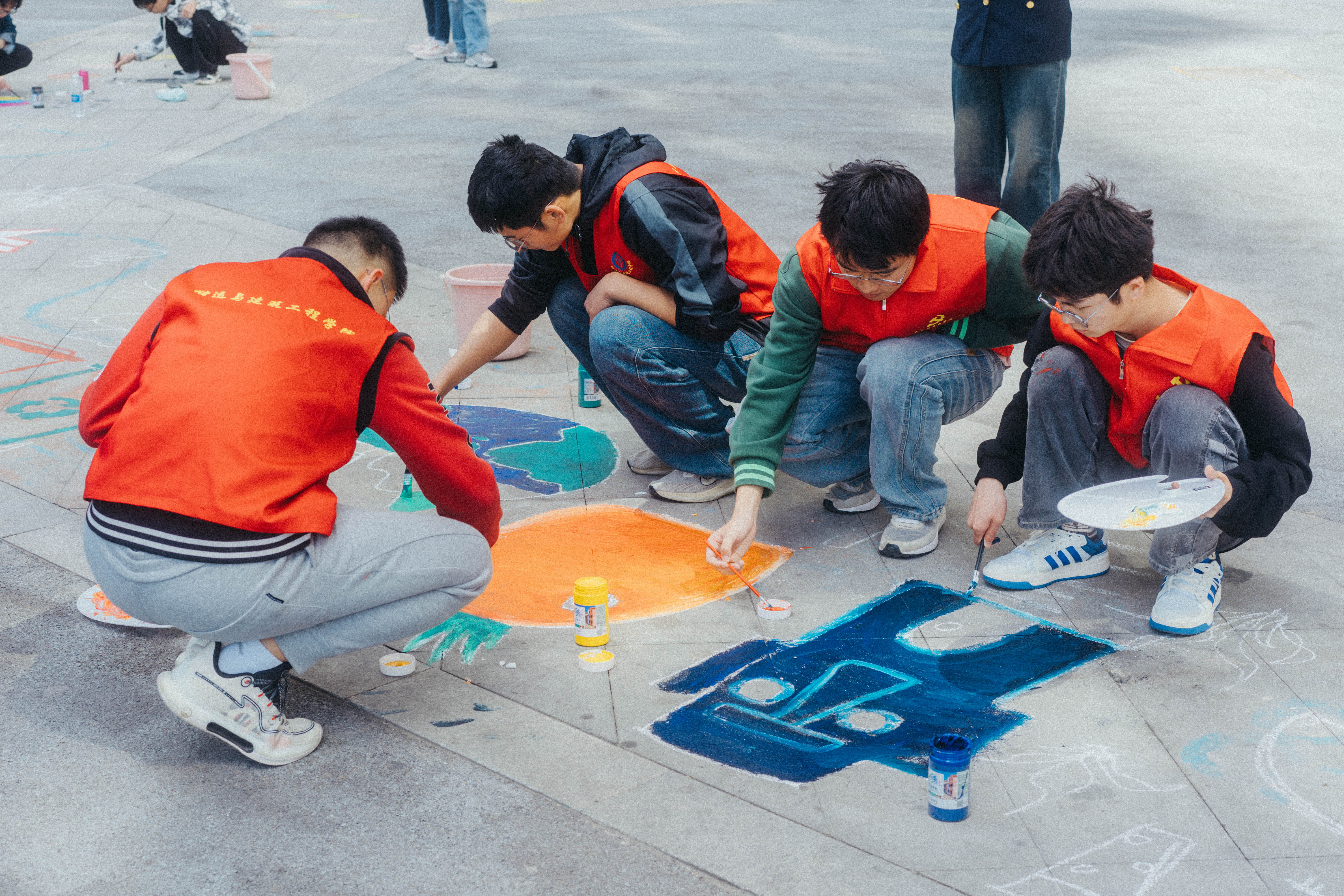 志愿者们与社区工作人员进行深入沟通,了解了社区的环境现状和美化的具体任务,随后志愿者们分组负责设计涂鸦图案、准备绘画工具和材料以及现场秩序维护和居民沟通工作。建筑学专业的志愿者们发挥专业优势,纷纷拿起画笔,开始涂鸦创作。在涂鸦过程中,志愿者们充分发挥想象力和创造力,以墙壁、地面为画布,以色彩为语言,创作出了一幅幅涂鸦作品,这些作品既带有社区文化特色的图案,也带有倡导文明行为、保护环境等的标语或口号,为社区环境的美化增添了一抹亮丽的风景线。部分社区居民前来围观,参与涂鸦的志愿者们深受社区居民的好评。