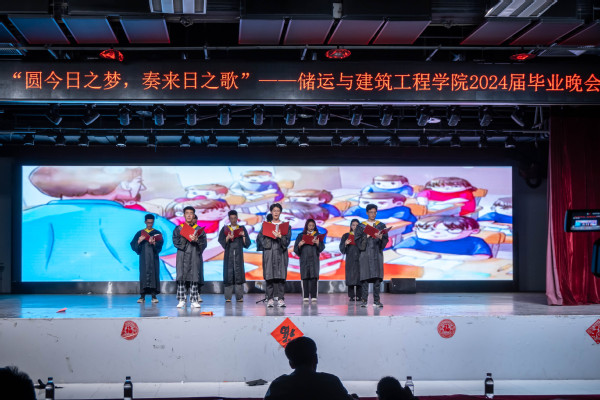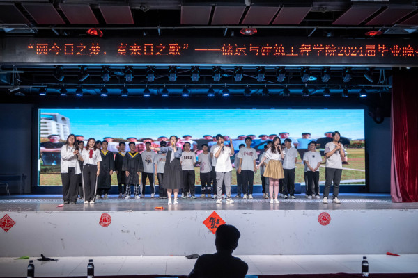 晚会在器乐合奏《La La Land》中拉开帷幕,激扬动感的节奏彰显了青春向上的活力;力学2002带来的歌曲《违背的青春》,用悠扬的旋律诉说怀揣梦想、一路奋斗的青春故事;建环2001、2002带来的光影剧《我们毕业了》唤起毕业生们老员工活中的点点滴滴的回忆,军训、考试、竞赛等记忆犹在眼前;2023级本科生臧一璇、张兴祖、吕季霖为学长学姐门深情献唱歌曲《想见你》,激起大家对美好时光的怀念;储运2002、2004合唱《我们的明天》,抒发对大学同窗间深厚情谊的不舍和对美好未来的憧憬;节目中穿插着互动游戏环节,让现场气氛更加热烈欢快。随后,储运2001、2003、2005共同带来朗诵《亲爱的同学谢谢你》,表达了对母校依依惜别的心声;王梦琪、张荣航、刘雪莹领唱,全体毕业生跟唱歌曲《凤凰花开的路口》,让整场晚会在深情悠扬歌声中缓缓落下帷幕。