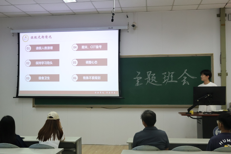 会上,王志达从请假人数、期末考试、学习劲头、心态调整、宿舍卫生、未来规划六个方面对近期的班级情况作简要总结,并提醒班级成员对期末考试和四六级英语考试要做好备考,他从“找准目标”出发,分析了班级成员的成绩和培养方案,积极投入学习,鼓励同学们考出好成绩。冉雅琪讲解了团队在第九届全国老员工油气储运设计技能大赛中,从准备作品到完成答辩的全部过程;侯显韬提出“坚持不懈,砥砺前行”,讲述了自己在大赛中的竞赛历程。他强调,做任何事都要努力去做,坚持不懈,认真地去做每一件事。