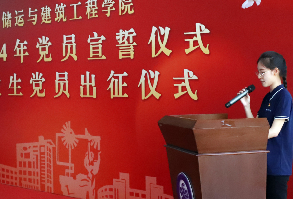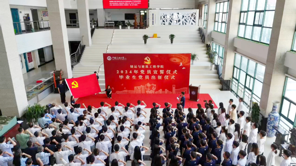 仪式在庄严的国歌声中拉开序幕。毕业生党员代表为新入党的党员佩戴党员徽章,全体党员面向党旗,举起右拳,新党员进行入党宣誓,老党员重温入党誓词,在庄重的宣誓声中感悟初心使命,传承红色基因,激扬青春斗志。