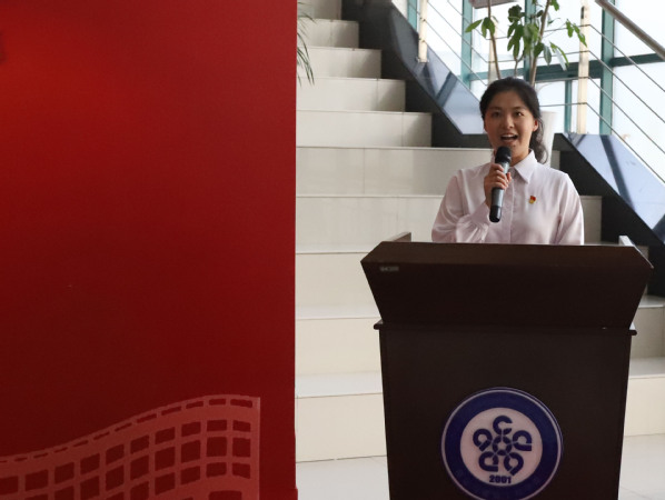 建环2001张倪雨代表毕业生党员发言,她表示,无论是走向工作岗位,还是继续求学深造,无论是在繁华发达的大城市,还是在僻静平凡的基层,都要始终以优秀党员的标准严格要求自己,用信仰的力量指引前行方向,努力学习,扎实工作,不负时代,不负青春。