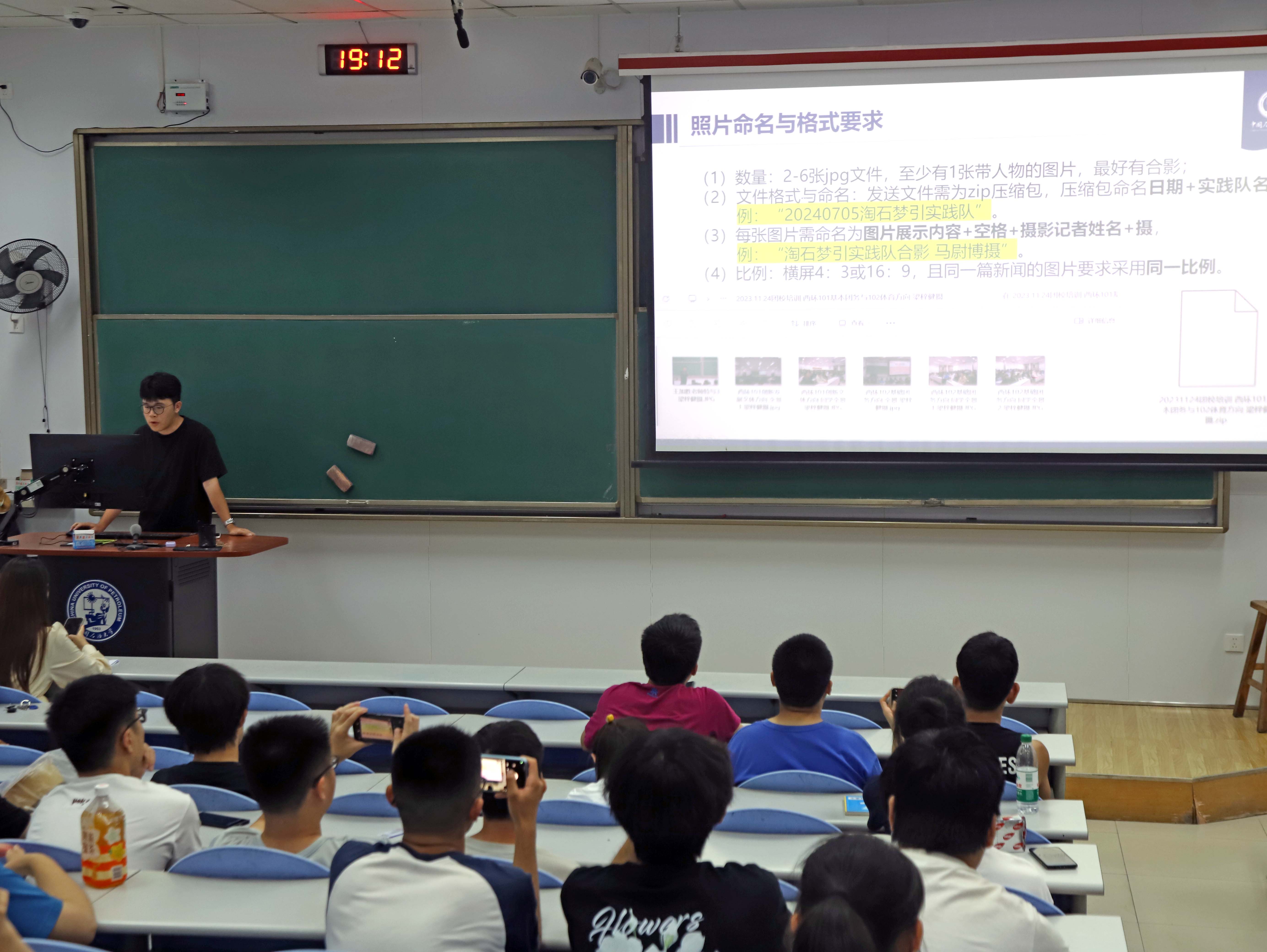 会上,邱玉婷从新闻五要素具体讲述如何撰写一篇合格的新闻稿,介绍新闻写作的格式和规范,强调新闻宣传的注意事项,并列出公司网站的投稿方式,切实提高了各实践队新闻宣传的积极性,为其提供了清晰明确的投稿流程。CHU先锋融媒体中心梁梓健从突出人物主题、构图稳定、画面整洁和后期处理四个方面介绍了社会实践照片的拍摄技巧,同时分享了自身的摄影经验,为各实践队的摄影作品打好基础。牛建林通过实际案例和预设存在安全隐患场景等方式,提醒各实践负责人注意社会实践的安全问题。同时,他从前期准备、出游安全、交通安全、财务安全四个方面进行安全培训,有效地提高了各实践队成员的安全意识,为公司暑假期间社会实践的顺利开展给予保障。