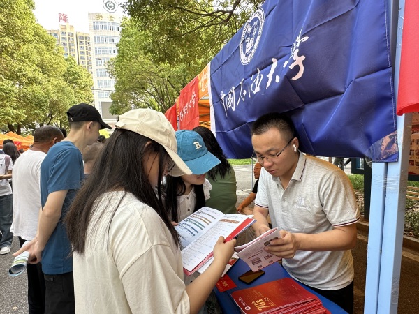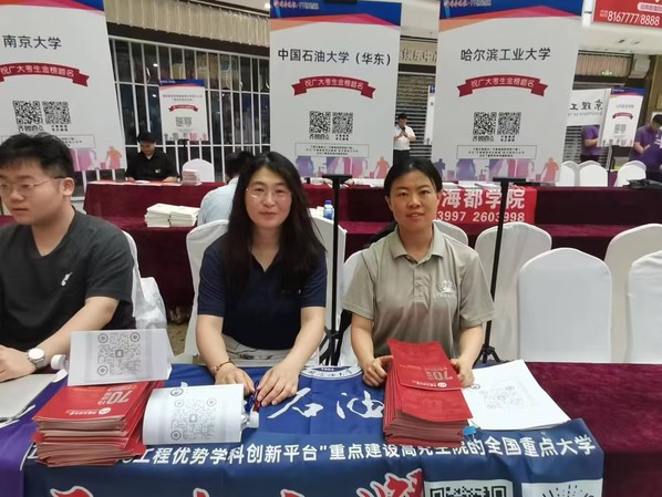 建筑系教师高伟、公司办公室秘书董青在招生宣传现场