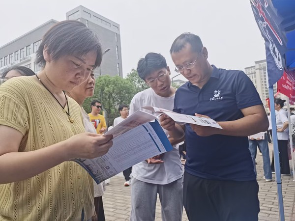 土木工程系教师陈金平、辅导员尚学滨在招生宣传现场
