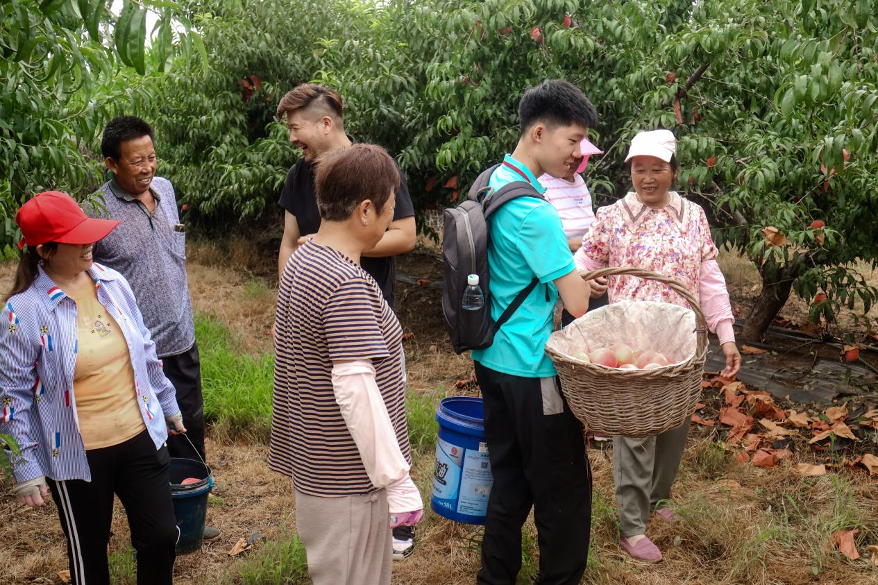 实践队成员尹聪武说道:“初次进入桃园,与果农的交流了采桃的大致流程和注意事项。我找好角度,把握力度,就完整地摘下了一颗肥桃。充实的采摘学习实践过程和独特的口感让我在刘台村采桃的经历更显珍贵。”