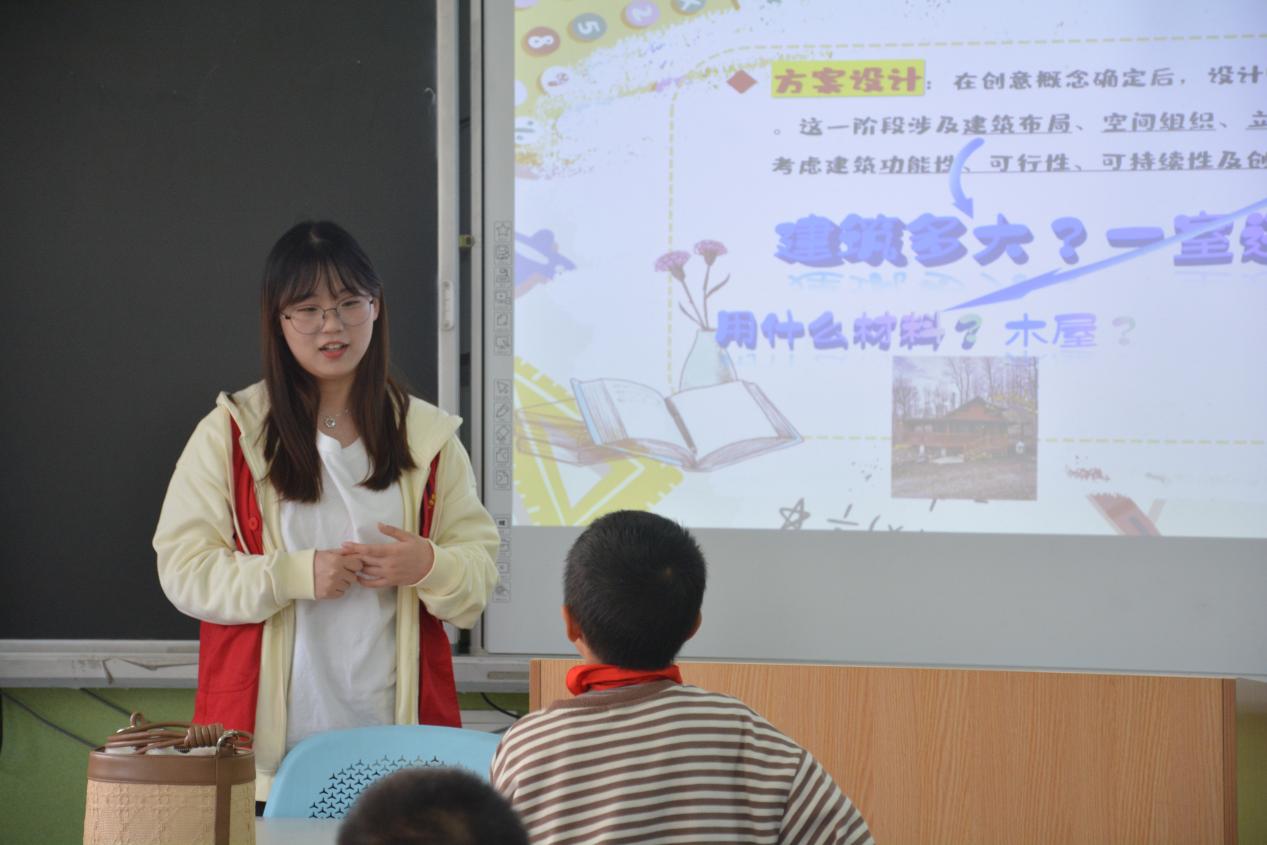 活动伊始,主讲人岳子静首先分三步向小朋友们详细讲解了建筑的设计过程,依次是设计用途、材料选择、图纸绘制,并引导孩子们在欣赏世界四大知名建筑中领略建筑之美。她还向孩子们介绍了“中国航天之父”、“两弹一星元勋”——钱学森。她说:“作为战略科学家,他以自己的远见卓识和超凡智慧,为中国科技发展提出了许多前瞻性和战略性的重要思想和建议。”钱学森的事迹极大地激发了孩子们对科学的崇高敬意。