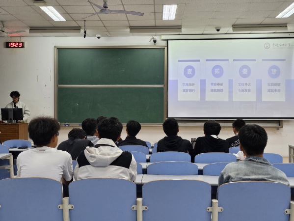 赵定钰以“员工工作”“专业学习”“科研竞赛”三大主题为切入点,讲述了自己在大学期间的成长与收获。在“员工工作”方面,她讲到员工工作能够极大地锻炼组织能力和团队协作能力,建议同学们在投身于员工工作的同时,要学会合理安排时间,以有效平衡学业与课外活动之间的关系。在“专业学习”环节,赵定钰结合自己的经验,从课程学习、时间管理和考试备考等方面介绍深入理解课程内容的重要性,建议同学们不仅要掌握书本上的知识点,更要注重知识的实际应用与融会贯通。在“科研竞赛”方面,赵定钰对部分竞赛项目进行了详细介绍,并强调竞赛不仅能够培养创新能力,还能提升个人综合素质。她建议同学们提前了解相关竞赛规则和要求,选择适合自己的参赛方向,锻炼自己的实践能力、创新思维和解决问题的能力。