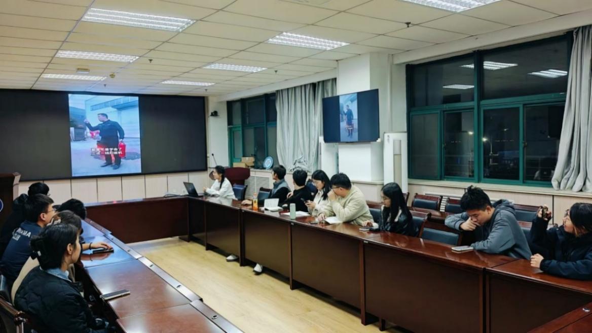 活动伊始,团支部书记李婷玉进行了简短的开场发言。她结合近期火灾事件案例,向同学们介绍了火灾发生的常见原因和造成的严重后果,她特别提到:“消防安全不仅是专业人员的责任,更是每个人日常生活中不可忽视的义务。”这番发言引发了在场同学的深思,现场氛围变得严肃而专注。