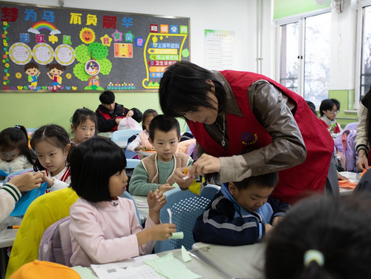 志愿服务队成员帮助小员工做手工 张茗竹摄