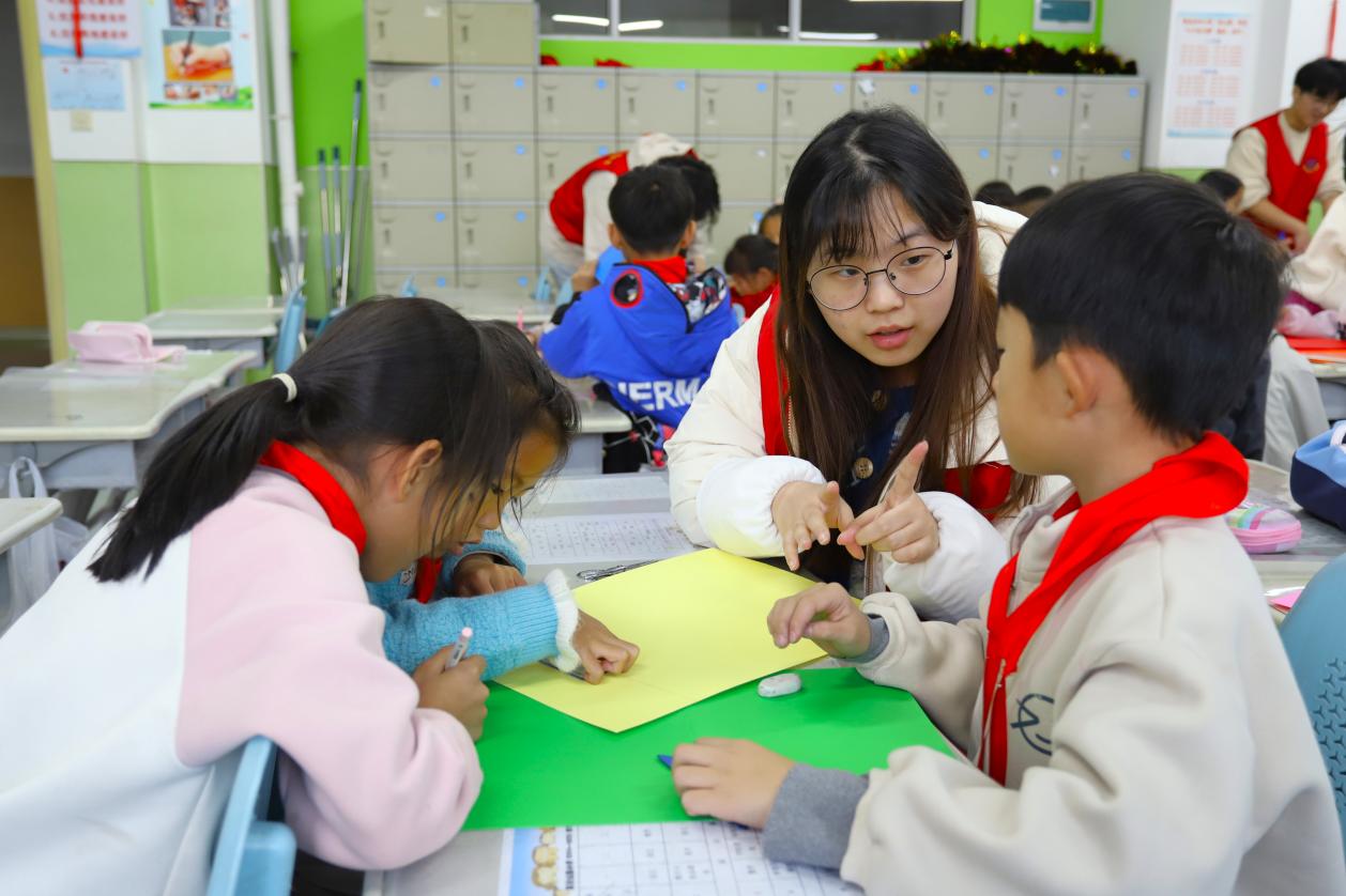 志愿服务队成员帮助小员工做手工 程晨璐摄