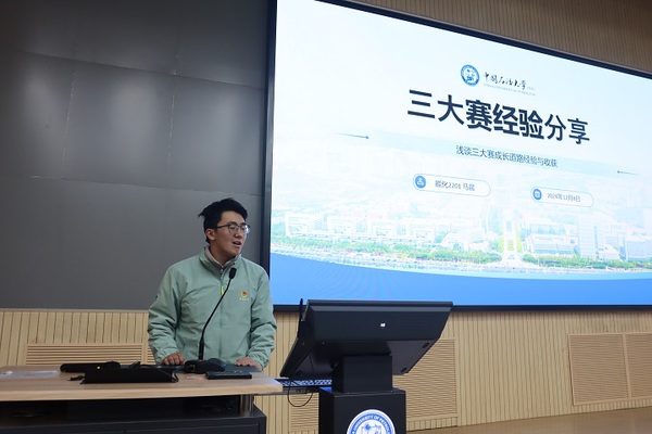 《热到菌除-基于CuS无定形球状多孔结构的油田污水细菌光热处理平台》项目负责人马晨同学为大家简要介绍了各个创新创业大赛的情况。他认为,大一新生应尽早接触并适当参与创新创业活动,为未来的创新创业之路奠定坚实基础。