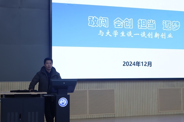 李峰弼老师以《敢闯、会创、担当、逐梦》为题,深入浅出地阐述了创新创业的重要性,强调了公司对创新创业工作的高度重视和大力支持,并详细指导了如何迈出创新创业的第一步。李老师着重强调了敢闯敢试、善于创新的精神培养,号召同学们积极投身到创新创业的实践中去。