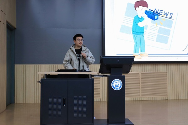 马尉博详细介绍了校内新闻宣传形式与平台、新闻采写要点、照片拍摄要求以及新媒体宣传特点与一体化策划等内容。马尉博鼓励团员青年学习优秀作品提升宣传能力,关注宣传工作的时效性和对社会热点的把握。