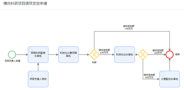 为推进“一件事”改革工作,以服务科研、服务学者为目标,信息化建设处协同科技处上线“横向科研项目绩效发放申请”,申请人通过线上填报、逐级审批(依据绩效发放额,见附图),解决教师填报时流程繁琐、来回跑腿等问题。具体见:数字石大→e站通→科研服务→横向科研项目绩效发放申请