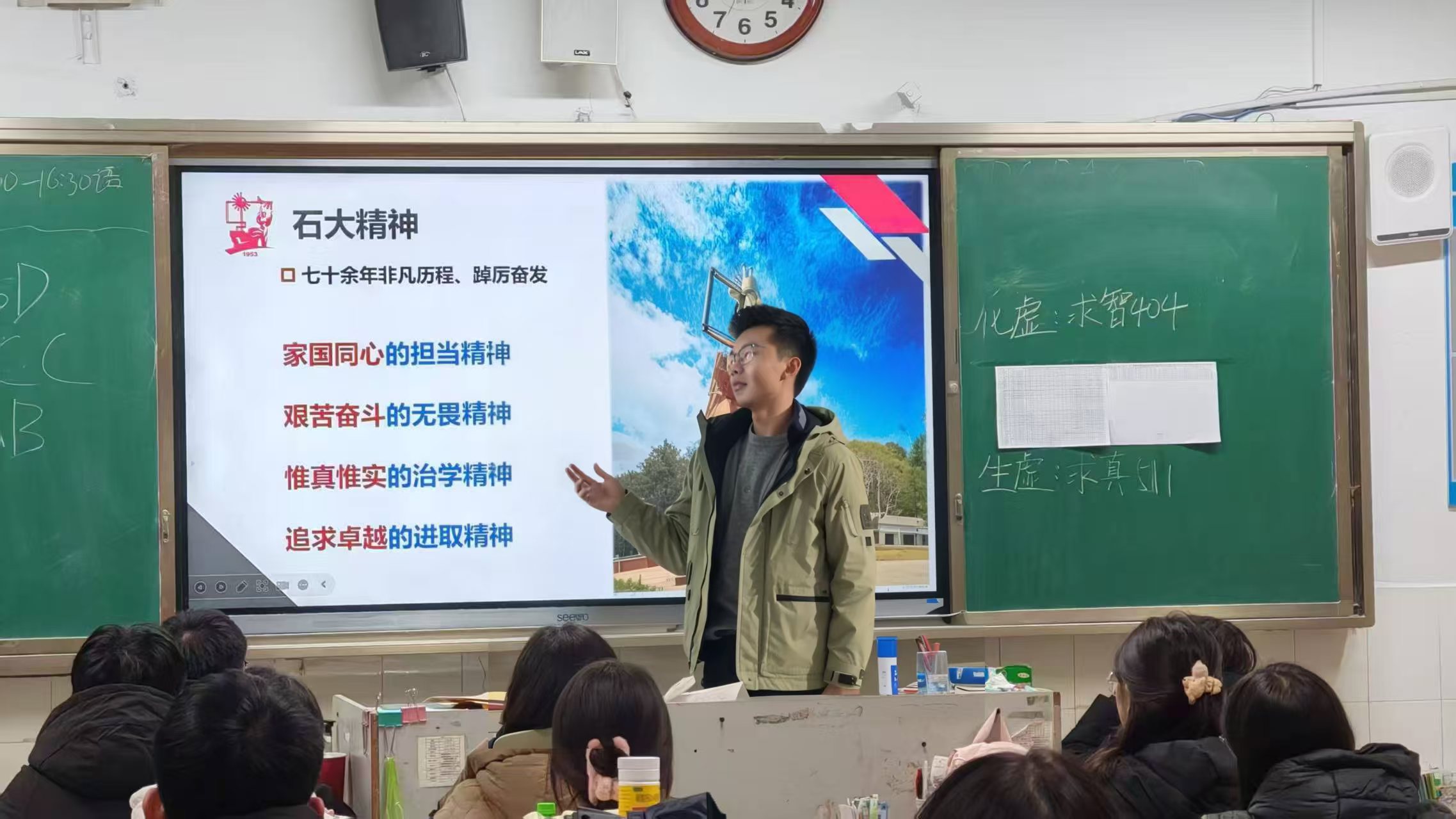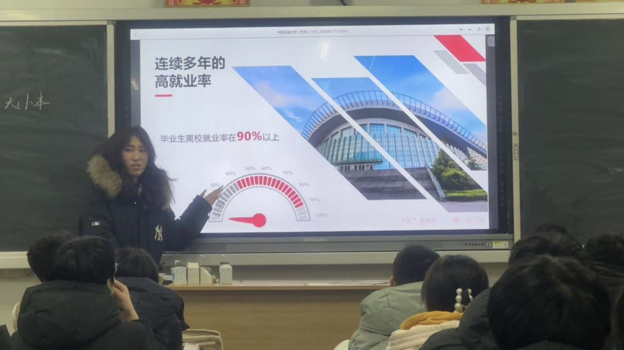 为宣传石大良好的学习条件以及精神面貌,传递青春力量,宣传石大风貌,2月16日,储运招生宣传队赴山东省临沭第一中学开展寒假返校宣讲。