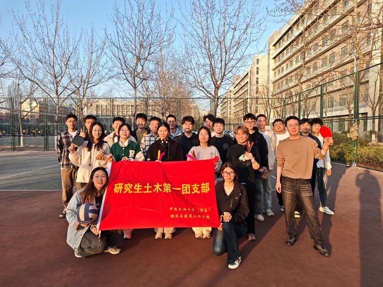 为丰富团员的业余生活,增强团队凝聚力,提升团支部成员间的交流与协作,研究生土木第一团支部于3月21日下午在工科楼D北侧排球场成功举办了“阳光体育日”主题团日活动。本次活动通过跳绳、踢毽子、乒乓球接力和气排球四个项目,以趣味竞技形式激发团员活力,吸引了团支部各年级研究生积极参与。