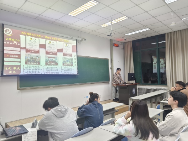 王奕栋从社会实践的类型讲起,介绍了专业实践、志愿服务、调查研究、公益项目等常见的实践形式,强调了不同类型的实践活动在组织方式和实施内容上的差异。随后,他详细说明了项目申报的流程,并结合自己曾参与的实践项目,剖析准备阶段时应注意的问题。在谈及实施环节时,他分享了如何协调团队分工、制定时间计划、应对突发状况等实用经验。