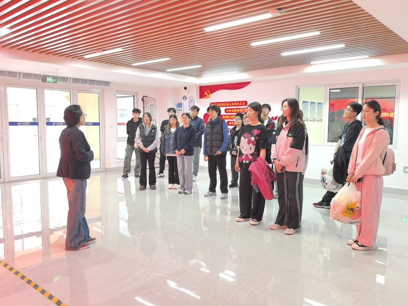 到达福利院后,由于特殊原因,同学们无法与孩子们当面交流沟通。通过儿童福利院负责人的引导和讲解,同学们认识到儿童福利院的发展历程、日常运作机制和工作内容,以及孩子们的生活和学习情况,同学们还了解到儿童福利院的孩子们面对诸多困难,仍能保持对生活的热爱和对未来的憧憬,为此深深打动在场的同学们。