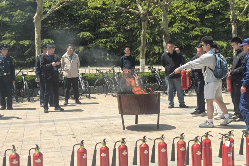 消防演练学习使用灭火器灭火 宋文清摄