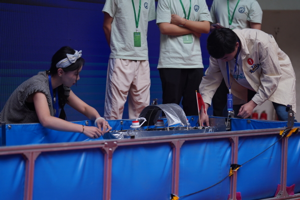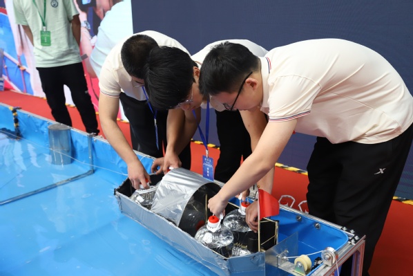 参赛队伍认真制作模型 王淮铎摄