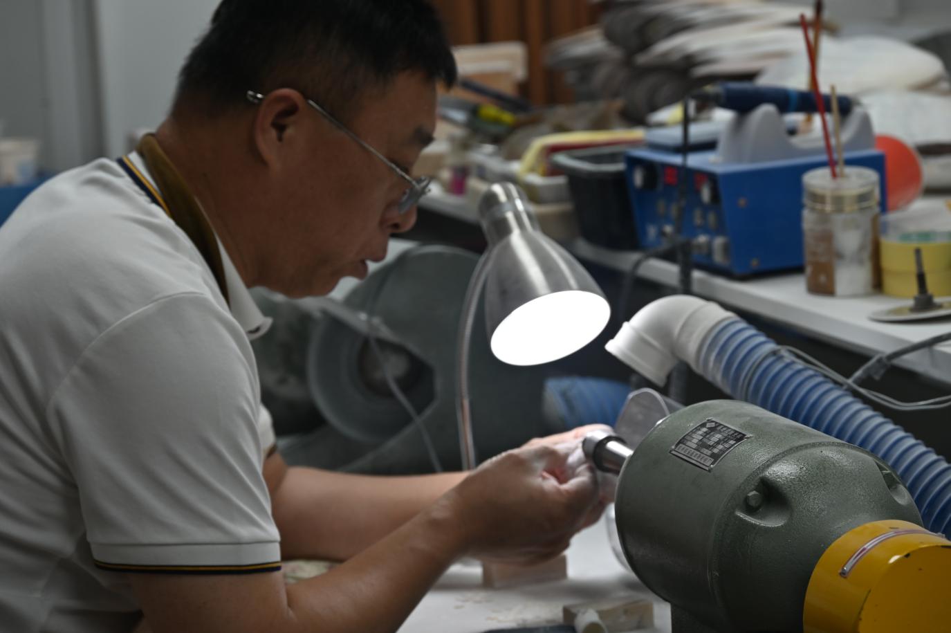 贝雕创作现场:匠人全神贯注打磨雕琢 罗余余摄