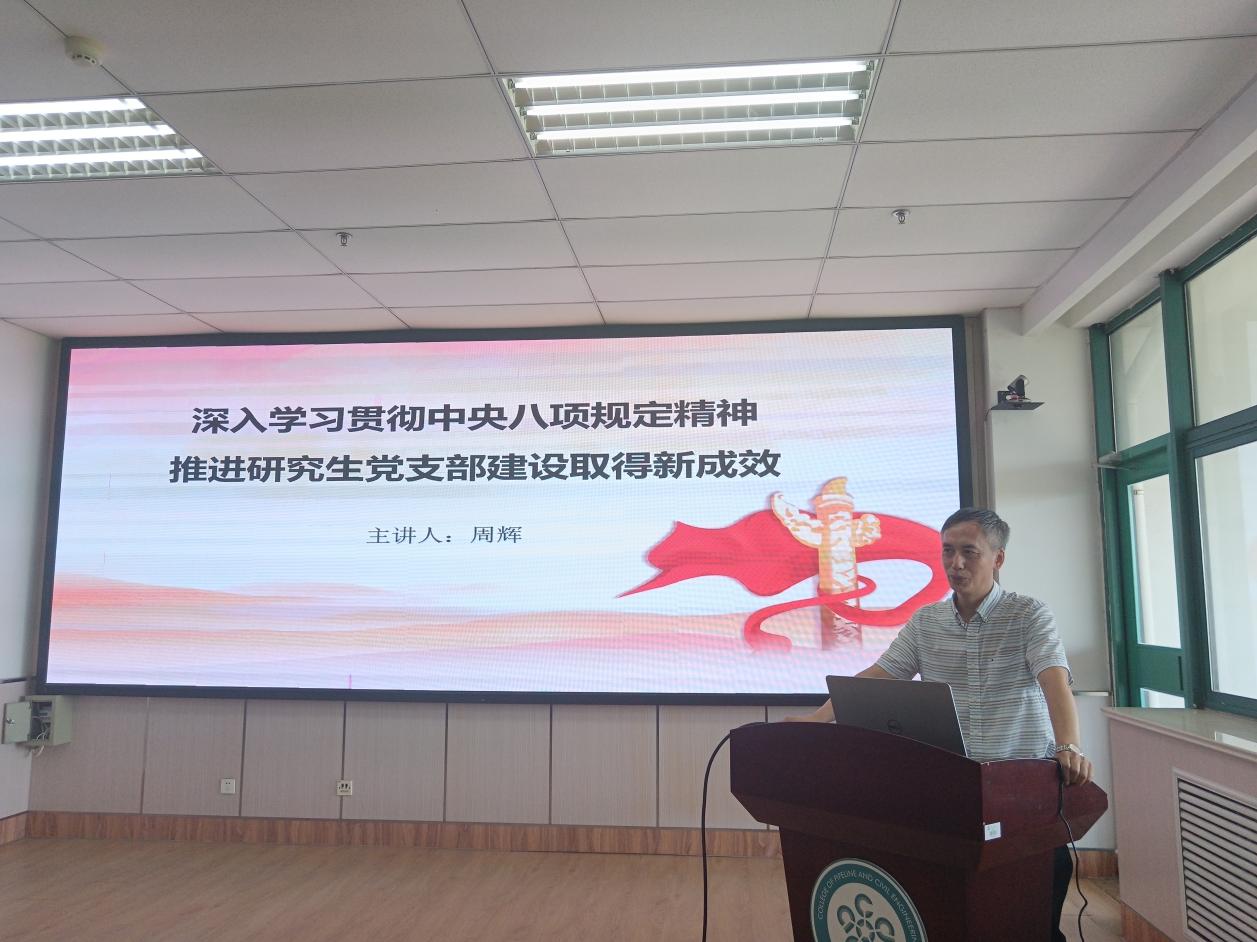 7月9日上午,以“深入学习贯彻中央八项规定精神,推进研究生党支部建设取得新成效”为主题的党课在工科D345会议室顺利开展,公司党委副书记周辉授课,辅导员张钦、韩栋庭以及全体研究生党支部书记参加会议。
