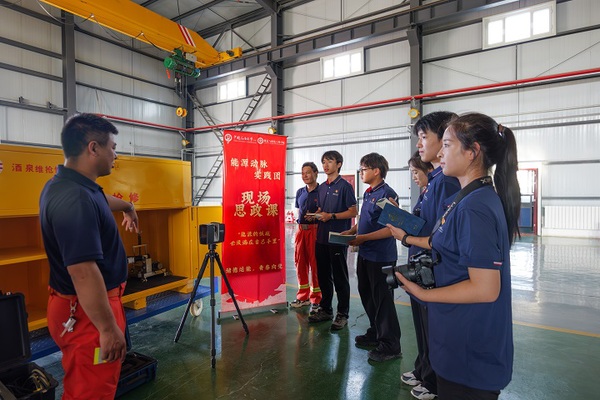 酒泉维抢修中心李强与赵幸为实践团开展现场思政课 马世瀛摄