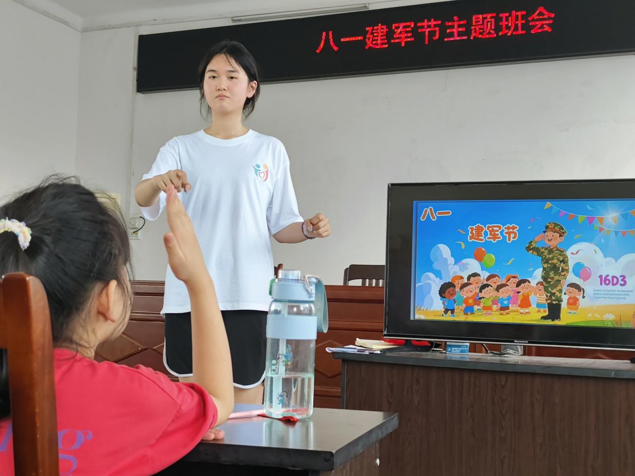 随后,支教队员与员工共同参与破冰游戏——你演我猜。员工与支教队员默契配合,尽可能为自己所在的队伍加分。通过破冰游戏中的互动成功拉近了支教队员和员工的距离。支教队员张鸿嬿为员工进行八一主题班会课的讲解。张鸿嬿带领员工观看《南昌起义》的纪录片片段,为员工讲述革命先烈的故事,回顾人民军队自建立以来的光辉历程。