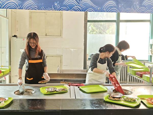 团支部成员收放碗筷 张彧涵摄