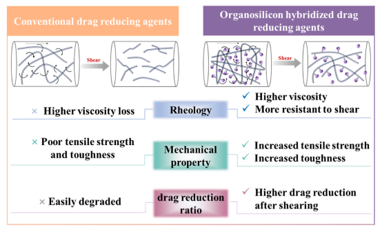 抗剪切聚α-烯烃(PO)聚合物类减阻剂效果对比与机理图