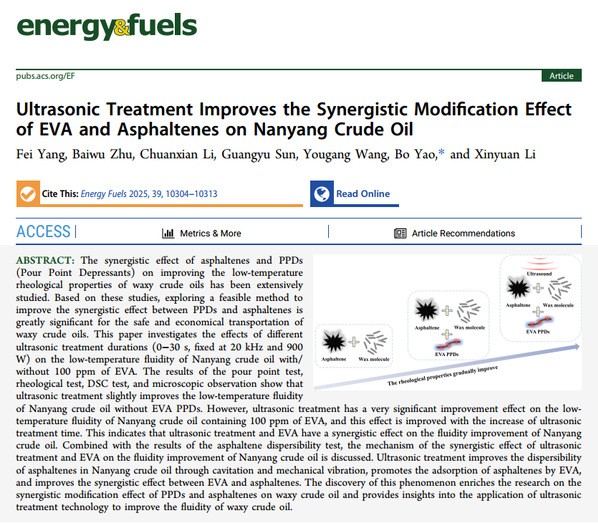 近日,公司杨飞教授团队在油品管道流动改进剂领域取得新进展,相关研究成果《Enhancing shear resistance in ultrahigh-molecular-weight polyolefin drag-reducing agents via siloxane bond integration》发表在《Energy》,《Ultrasonic Treatment Improves the Synergistic Modification Effect of EVA and Asphaltenes on Nanyang Crude Oil》和《Synergistic Improvement of Rheological Properties in Changqing Waxy Crude Oil by Ethylene Vinyl Acetate and Surfactant Combinations》发表在《Energy& Fuels》。《Energy》是能源领域国际顶级期刊(SCI一区TOP),《Energy& Fuels》是能源与燃料领域国际著名期刊。论文第一作者分别为杨飞老师以及博士生吕诗怡,XC体育为第一署名单位。该研究得到了国家自然科学基金面上项目的资助。